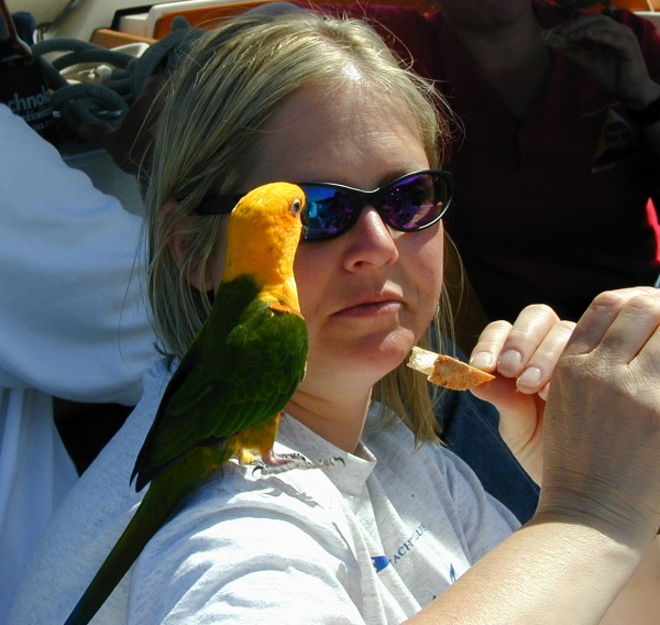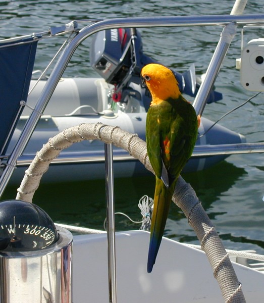 | Later that afternoon several more boats arrived at Longbranch. There were two rafts with a total of about eight boats. Two dogs, two parrots, along with associated human sailors. No more pictures though. |